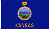 The 2x3ft Polyester Kansas Flag has header tape and 2 metal grommets- Flag is dye-sublimated with beautiful bold colors.